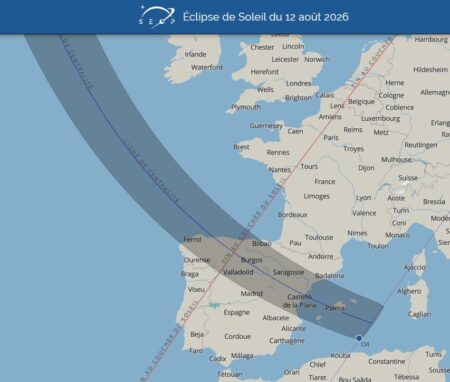 Depuis une bande qui traverse l’Espagne, l’éclipse sera totale. Elle sera partielle tout autour. En France, le Soleil sera occulté à plus ou moins 97%, ce qu’on n’avait pas observé depuis l’éclipse du 11 août 1999. Nous aurons l’occasion de reparler de cet événement ; en attendant, admirez la Lune !