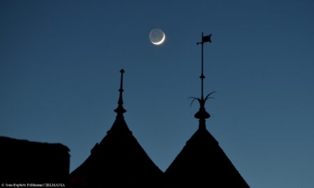 - Le fin croissant de Lune accompagne Vénus à l’aube
