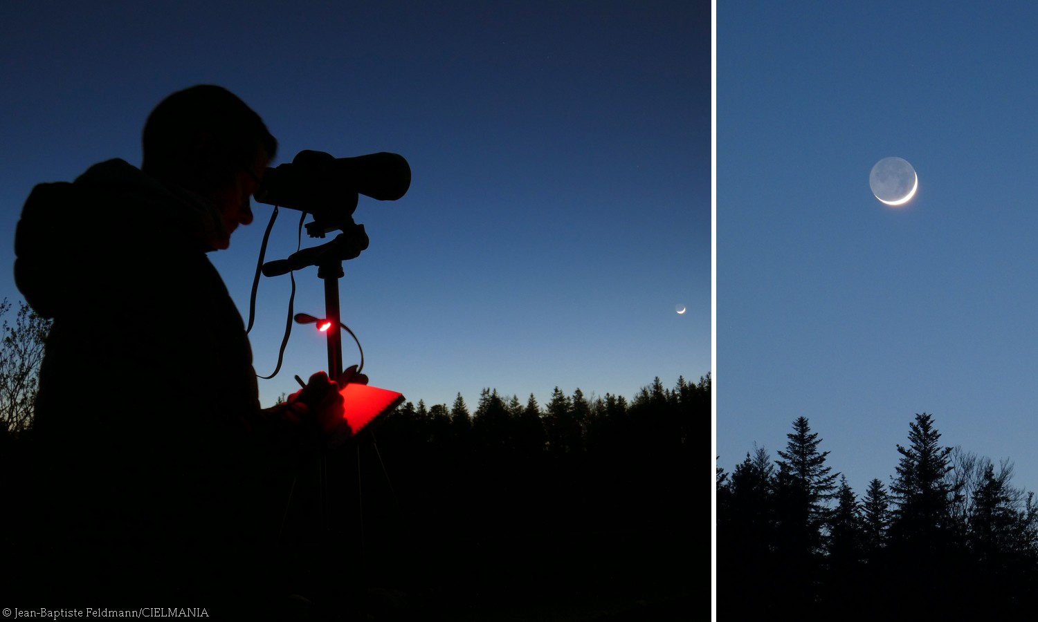 Je ne peux que vous encourager à savourer cette féérie. Pour cela, consultez régulièrement les éphémérides pour y repérer l’époque de chaque Nouvelle Lune. À l’aube un peu avant, ou au crépuscule juste après, vous pourrez en profiter, pour peu que votre ciel soit dégagé. Certains astrophotographes, comme le regretté Fred Espenak, on même filmé cet instant de grâce, ici en 2015 :
