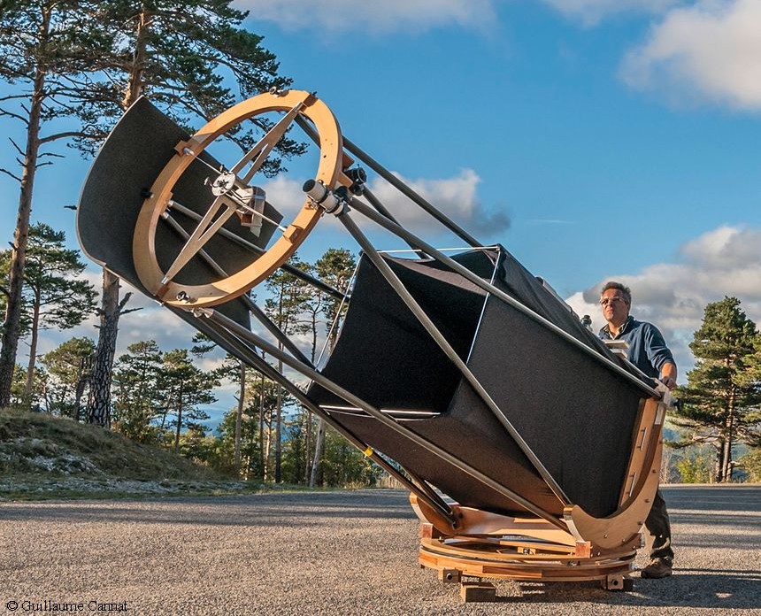 Cette aventure a débuté en 1994 pour son auteur, Guillaume Cannat. Passionné d’astronomie, il décide alors d’en vivre. Entre écriture d’ouvrages, animations et sensibilisation du public, Guillaume Cannat s’impose peu à peu comme une personnalité incontournable de la vulgarisation scientifique en France. Une action qui lui vaut d’avoir désormais son nom accroché au firmament, avec l’astéroïde (22512) Cannat. Parallèlement, il observe et photographie inlassablement le ciel nocturne. Pour assouvir sa passion, il n’hésite pas à construire ou faire construire différents instruments d’observation. Dernier en date, un impressionnant télescope de 76 centimètres de diamètre :
