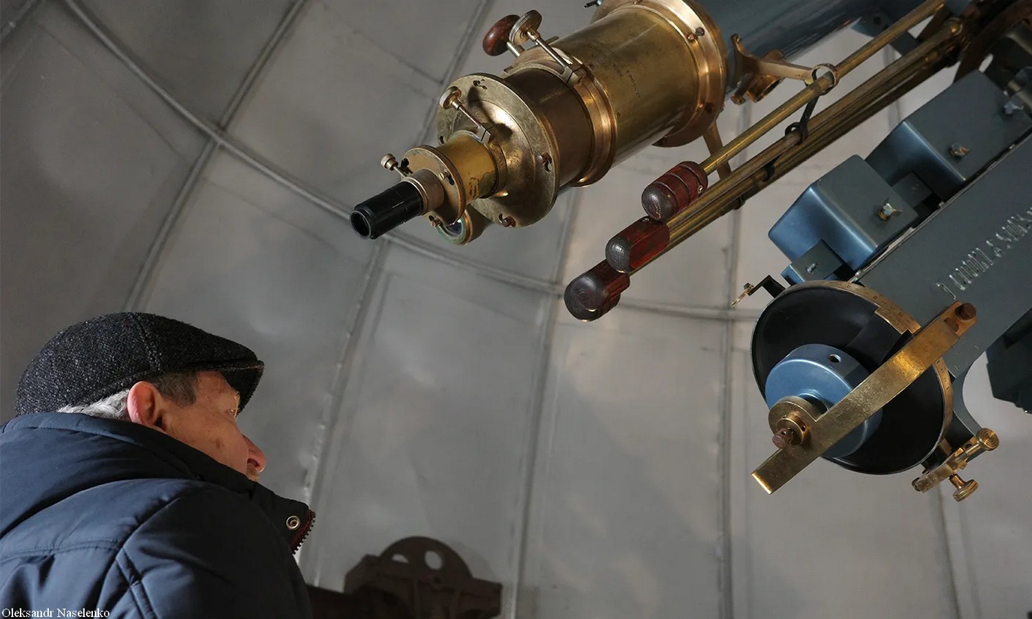 Mykola Koshkin, le directeur actuel, derrière la lunette de 165 millimètres. © O. Naselenko