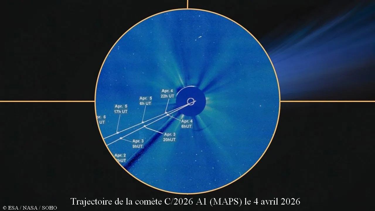 Il suffira alors de se rendre sur la page des instruments LASCO (Large Angle and Spectrometric COronagraph). En temps normal, C2 (champ étroit) et C3 (grand champ) permettent d’étudier la couronne solaire. Mais pendant quelques heures, la comète C/2026 A1 s’invitera dans le champ de ces coronographes.