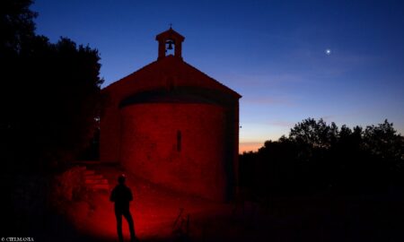 Si certains objets astronomiques nécessitent l’usage d’un télescope, ce n’est vraiment pas le cas de Vénus. Avec une magnitude toujours négative (entre -3 et -4), la seconde planète du Système solaire est immanquable. Vous allez pouvoir en profiter pendant plusieurs mois, puisque l’astre en question (appelé improprement Étoile du berger) est de nouveau installé dans le ciel du soir. Pas besoin d’attendre la nuit pour la voir. Avec un peu d’entraînement, on la trouve facilement moins de trente minutes après le coucher du Soleil :
