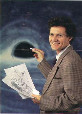 A l’Observatoire de Meudon où je venais d’arriver nous avions un seul gros ordinateur, sur lequel on écrivait un programme en Fortran. Il était un peu lent, mais il était capable de calculer les trajectoires des rayons lumineux et les distorsions optiques due à la forte courbure de l’espace-temps. Cependant je n’avais pas de logiciel pour produire la photographie virtuelle finale, je n’avais qu’un tableau de chiffres. J’ai donc finalisé la visualisation à la main.