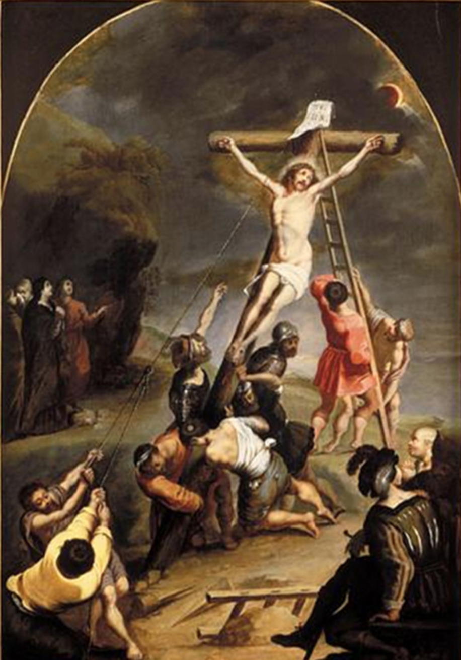 L’éclipse de la Crucifixion, mentionnée dans les Évangiles, pourrait correspondre à l’éclipse réelle survenue le 24 novembre de l’an 29[2]. La scène a été représentée maintes fois dans l’histoire de la peinture, notamment par Cornelis de Vos (1584-1651).