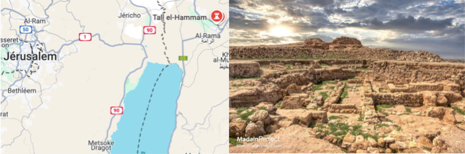 De nombreux éléments découverts à Tal el-Hammam semblent confirmer la thèse. La présence de quartz choqués, comme il ne s’en forme que sous de très hautes pressions, ainsi que de minuscules « diamonoïdes », sortes de diamants plus petits que des virus et formés à partir de bois et de plantes lorsque température et pression augmentent brutalement, l’attestent. Ou encore la teneur en sel de certains échantillons, allant jusqu’à 25 % alors que la moyenne des sédiments locaux se situe autour de 4 %. Il se peut, en effet, que l’impact de la météorite ait partiellement touché la mer Morte, qui est très riche en sel, tout comme ses rives. Ainsi l’impact peut-il avoir redistribué ces cristaux de sel au loin. Et ce non seulement à Tall el-Hammam, mais aussi à proximité de Tell es-Sultan (l’ancienne Jericho) et de Tall-Nimrin, deux autres villes qui ont subi une destruction violente à la même période.