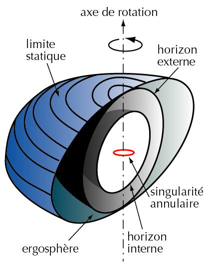 Avec les travaux théoriques des années 1960-70, notamment ceux de Roger Penrose, Stephen Hawking et Brandon Carter, on découvre qu’avec les trous noirs en rotation, c’est un peu plus subtil que ça.