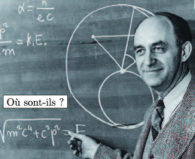 C’est une très bonne question soulevée en 1938 par le physicien prix Nobel de physique Enrico Fermi : « s’il y avait des civilisations extraterrestres, leurs représentants devraient être déjà chez nous. Où sont-ils donc ? ». En effet, à partir du moment où le Soleil est une étoile relativement jeune dans l’histoire de l’univers, il y a eu beaucoup d’autres étoiles qui se sont formées bien avant. Et si l’on croit que l’évolution naturelle conduit inéluctablement à l’émergence de formes vivantes de plus en plus sophistiquées, allant jusqu’à des civilisations technologiques, alors il devrait y avoir eu bien avant nous des civilisations beaucoup plus avancées que nous. Le raisonnement est donc le suivant : si ces civilisations développent les technologiques spatiales et découvrent la façon de voyager entre les étoiles, pourquoi ne nous ont-elles pas rendu visite de façon incontestable ?